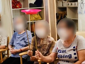 皆さんマジックに驚きながらも楽しくご覧になり、続いて皿回しにも挑戦されました。 笑顔あふれる楽しい時間となりました。