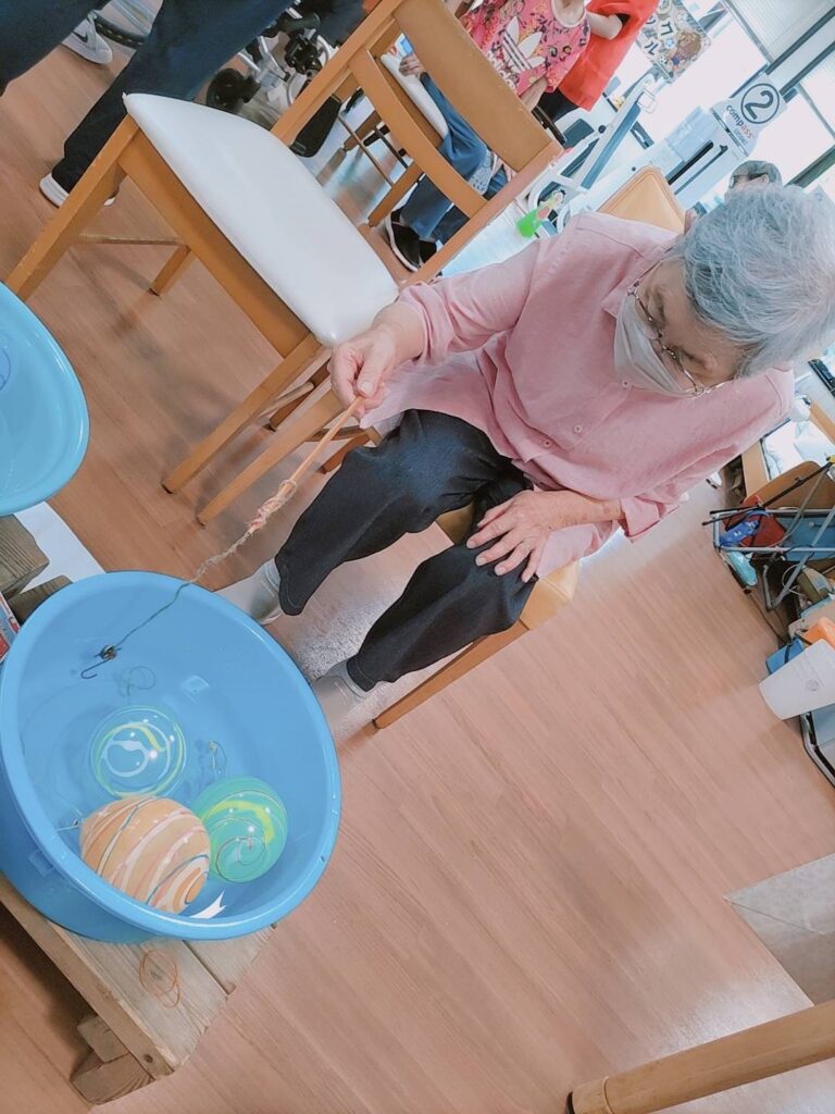 今週月曜日から始まったスリーケアの夏祭りも、今日で最終日を迎えました。 輪投げ・サッカー・ヨーヨー釣りなどのゲームや、美味しい食べ物を通して、利用者様には子どもの頃を思い出しながら楽しんでいただけたようです。