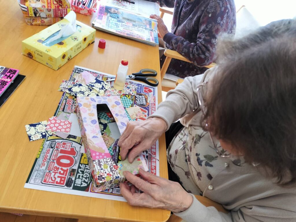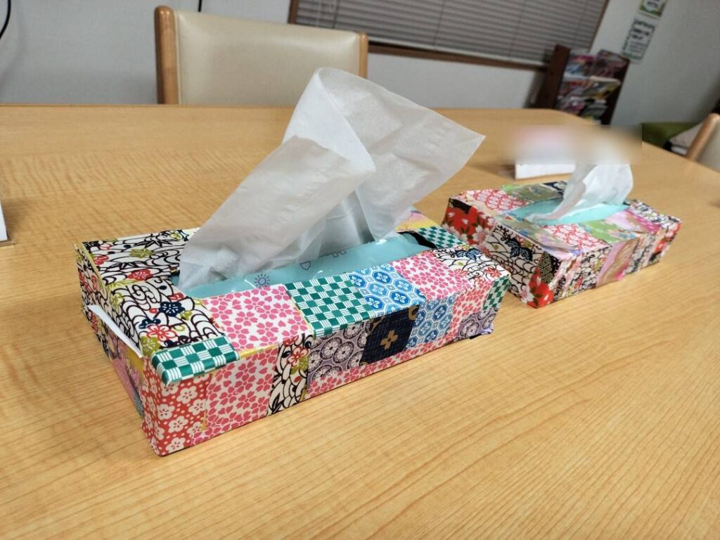 利用者様が卓上のティッシュケースをアレンジして下さいました😊