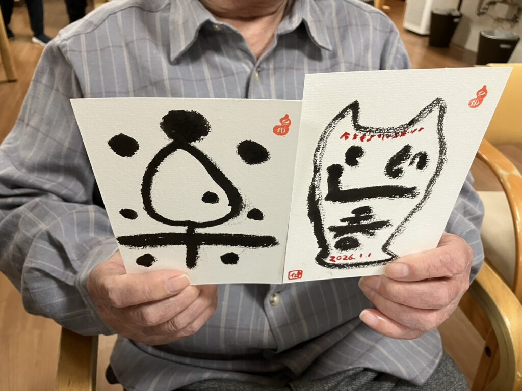 最終的には 「楽」 の一文字と、来年の干支である 「午」 の作品が完成しました。