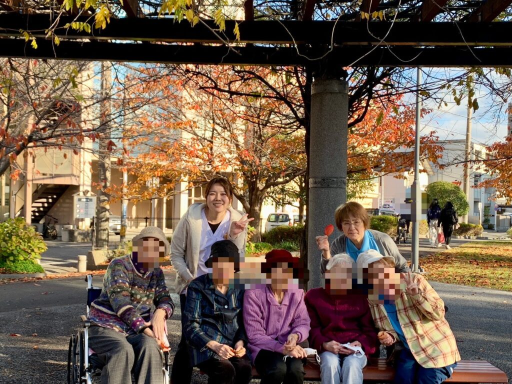 寒さを感じる日々が増え体調管理が難しい季節ですね💦 公園歩行へ行った際に桜の葉が赤々としていてご利用者様も喜ばれておりました!