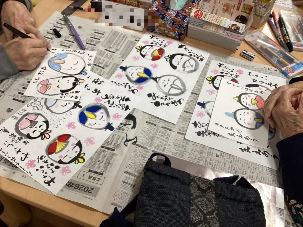 今日は『己書』というアート書道の先生が来てくださり、皆さんで筆ペンを使用して可愛く書きました!